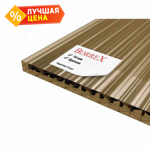 Сотовый поликарбонат 16 мм BORREX бронза 2100х6000 мм