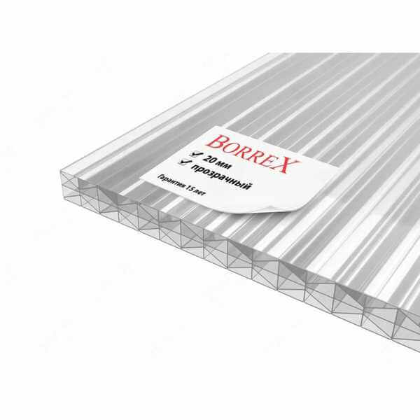 Сотовый поликарбонат 20 мм BORREX прозрачный 2100х12000 мм