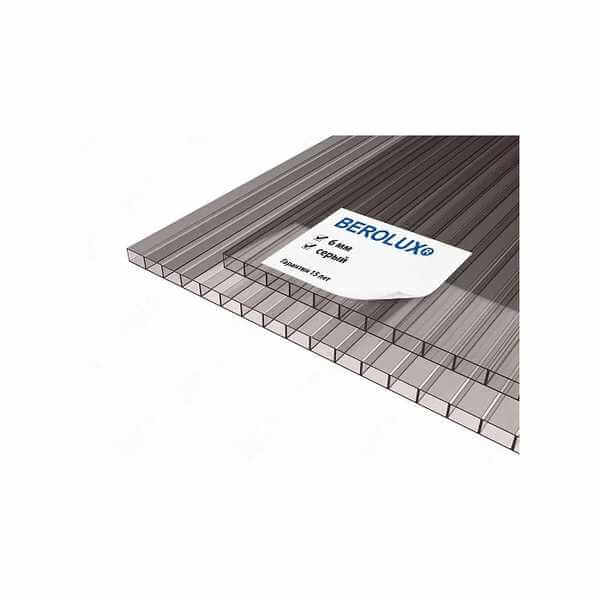 Сотовый поликарбонат 6 мм BEROLUX серый 2100х6000 мм