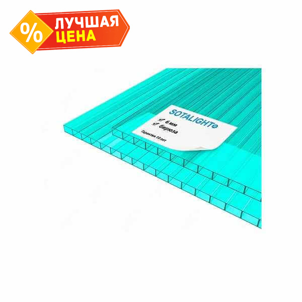 Сотовый поликарбонат 6 мм SOTALIGHT бирюза 2100х12000 мм