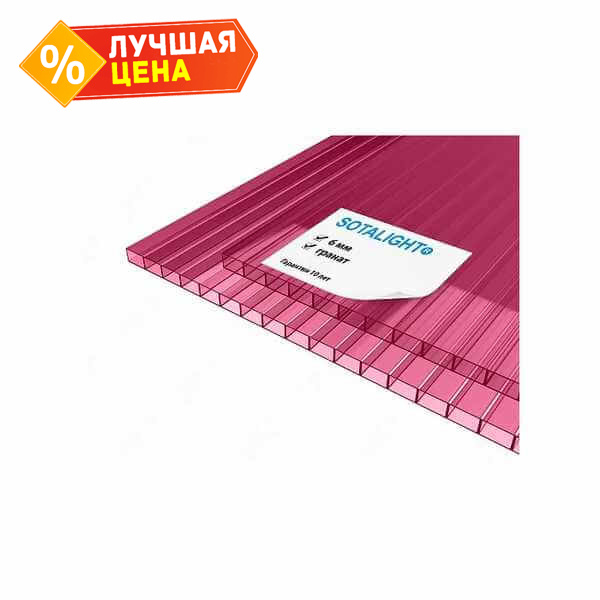 Сотовый поликарбонат 6 мм SOTALIGHT гранат 2100х12000 мм - это прочный и легкий материал, который отлично подходит для использования в различных строительных и дизайнерских проектах. Поликарбонат обладает высокой прочностью и устойчивостью к воздействию внешних факторов, что делает его идеальным выбором для создания надежных и долговечных конструкций.