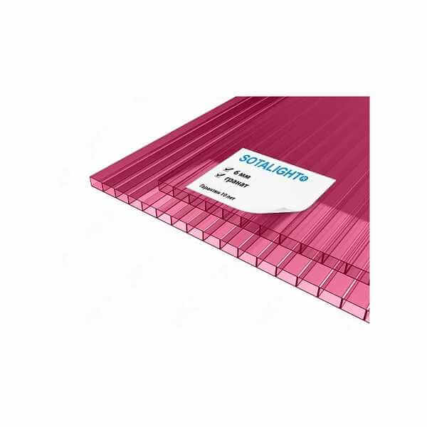 Сотовый поликарбонат 6 мм SOTALIGHT гранат 2100х6000 мм - это прочный и легкий материал, который отлично подходит для использования в различных строительных и дизайнерских проектах. Поликарбонат обладает высокой устойчивостью к ультрафиолетовому излучению, ударам и атмосферным воздействиям, что делает его идеальным выбором для создания надежных и долговечных конструкций.