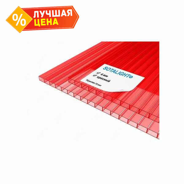 Сотовый поликарбонат 6 мм SOTALIGHT красный 2100х12000 мм