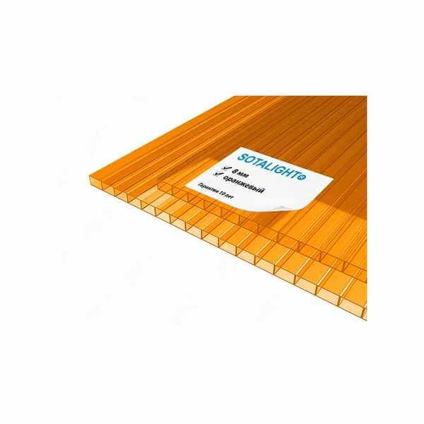 Сотовый поликарбонат 8 мм SOTALIGHT оранжевый 2100х6000 мм