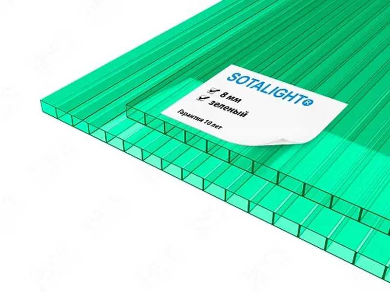 Сотовый поликарбонат 8 мм SOTALIGHT зелёный 2100х6000 мм - это прочный и легкий материал, который отлично подходит для использования в различных строительных и дизайнерских проектах. Поликарбонат обладает высокой прочностью и устойчивостью к воздействию внешних факторов, что делает его идеальным выбором для создания крыш, навесов, ограждений и других конструкций.