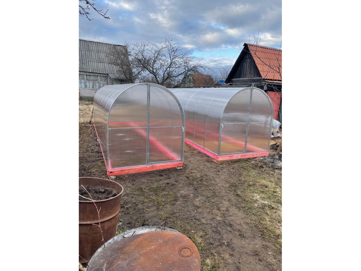 В разобранном виде теплица состоит из отдельных сварных рам в виде дуги. Транспортные габариты 2000х1700 мм.