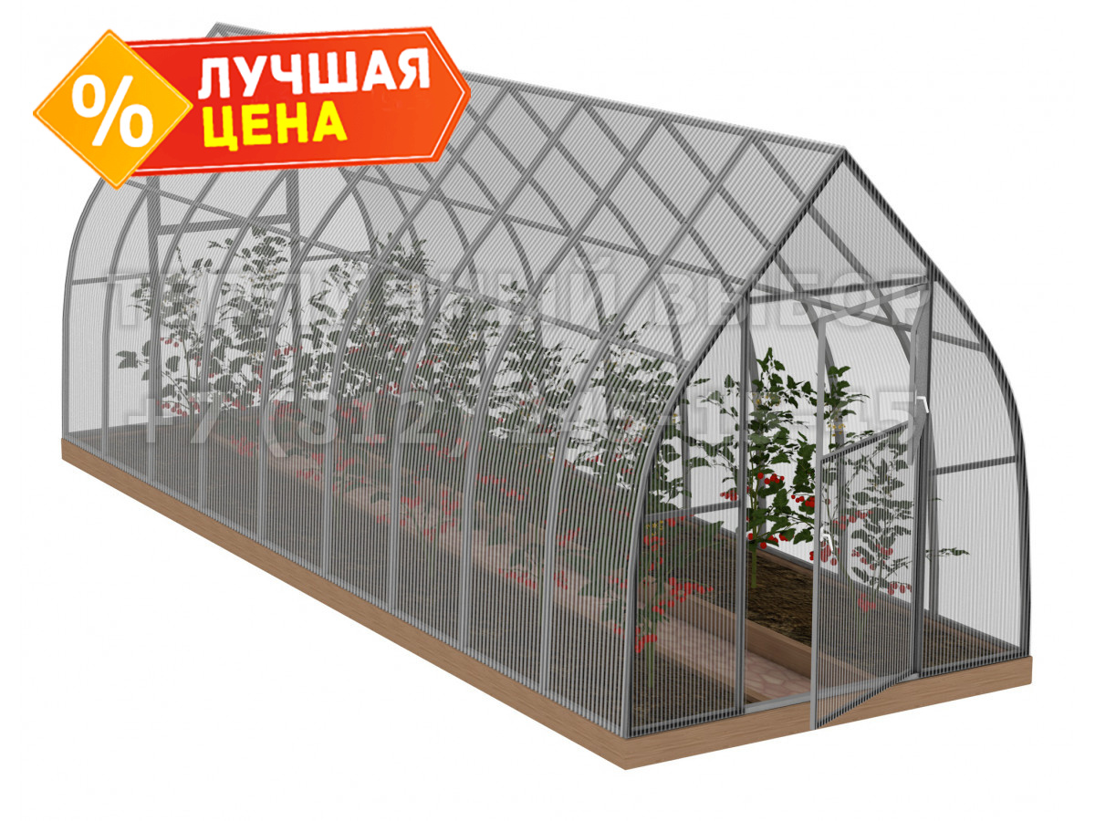 Теплица из поликарбоната Усиленная Капелька 2,1х8 h=2.3 м профиль 25х25 мм